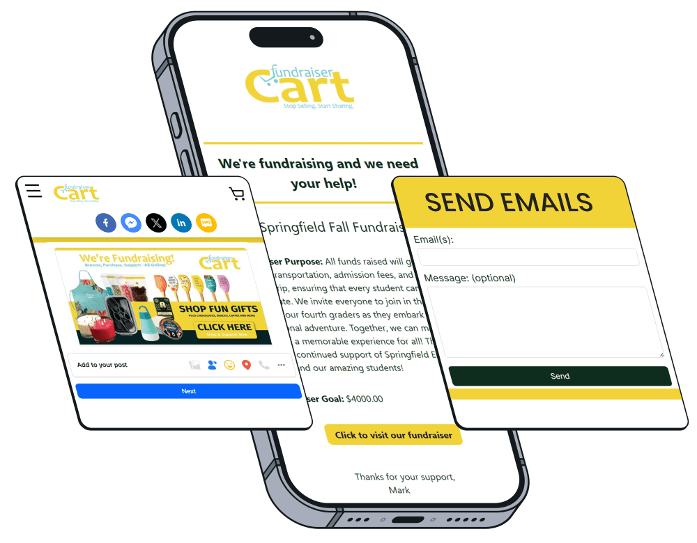 Mobile phones and social media connect us in a whole new way and across thousands of miles. FundraiserCart makes it easy to span your fundraiser across the miles to connect with more people. This can mean more customers, increased sales, and a quicker achievement of your financial goals.